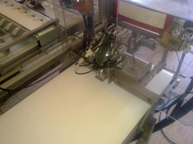 A dobozok terítékeit egy, a berendezés elején elhelyezett tárba helyezi a kezelő a feldolgozás megkezdése előtt. Az automata üzem indítása után ebből a tárolóból automatikusan indul a kartonok kiadagolása a termékfeldolgozás megkezdésével. A kiadagolt kartonok egy speciális hajtogató egység fölé kerülnek kiadagolásra, ahol a fészek két oldalán elhelyezett - Hot-Melt berendezéshez csatlakoztatott - ragasztófejek a doboz „füleire” rálövik a ragasztóanyagot. A ragasztó feljuttatása után egy nyomólap segítségével bepréselődik a karton a fészekbe, miközben megtörténik a fülek behajtása. A hajtogató egység fészkének kialakítása olyan, hogy a lehajtott tálcák még 2 hajtogatási ütemet a fészek alsó részében töltenek, így biztosítva a megfelelő száradási időt a ragasztott terméknek. Minden már elkészült tálcát az őt követő második doboz hajtogatása löki ki a berendezés kihordó szalagjára, amiről vagy elveszik a kezelők, vagy egy speciális utótárolóba kerülhetnek a kész tálcák.